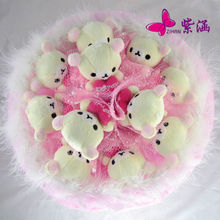卡通花束11只米色抱心小轻松熊公仔玩偶花送女生日闺蜜纪念日手捧