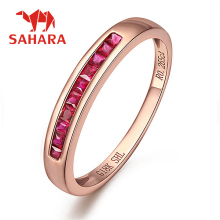 撒哈拉宝石 2015新款天然红宝石戒指 玫瑰金18k简约红宝彩宝女戒
