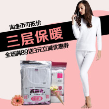 包邮宜而爽女三层暖保暖夹棉圆领纯棉内衣衫裤套装白色库存赔钱甩