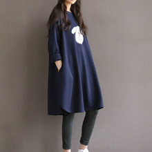 2017春秋装新款森女系长袖大码卫衣裙宽松卡通小狗连衣裙