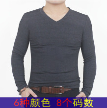 秋季男士打底衫加肥加大码V领t恤长袖纯棉低领鸡心领男装内衣服潮