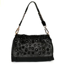 茉莉世家正品女包2017新款复古带钻韩版翻盖单肩斜挎手提包包潮黑