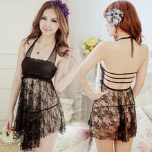 情趣内衣套装 黑色高贵透视蕾丝抹胸短裙 诱惑女性感睡衣樱花睡裙