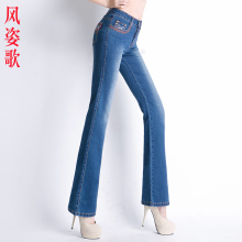风姿歌 2017夏季高腰弹力微喇显瘦提臀刺绣花牛仔裤女长裤韩版潮