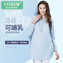 十月妈咪2017春夏装新款韩版时尚孕妇装纯棉上衣孕妇中长款衬衫