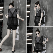 小四原创欧洲站夏装新款蕾丝坎肩两件套休闲百搭短袖T恤女打底衫