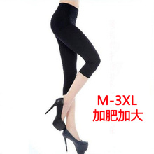 加肥加大码女装200斤胖MM七分裤2017新款夏季黑色纯棉弹力打底裤