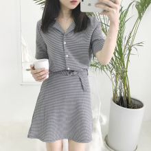 2017 韩版新款春季女装时尚短袖格子套装裙子两件套显瘦短裙潮