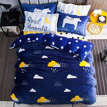 现代混搭简约珊瑚绒四件套加厚冬季保暖法莱绒4件套法兰绒床品