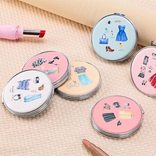 可定做时尚圆形创意卡通随身折叠双面pu皮革化妆镜便携镜子包邮