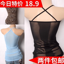特价 韩版女式吊带上衣 网纱背心 交叉绑带露背透视打底内搭
