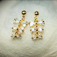 BRIA 韩国小香风超闪锆石迷你蝴蝶结小巧耳钉耳环甜美淑女耳饰品