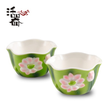 活器 荷华叶碧 珐琅瓷莲花茶杯 茶道茶杯2个装