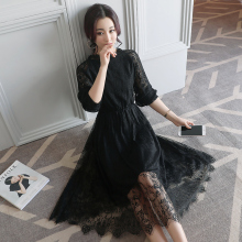 200斤胖mm春夏2017大码女装新款胖妹妹显瘦礼服2016韩版蕾丝长裙