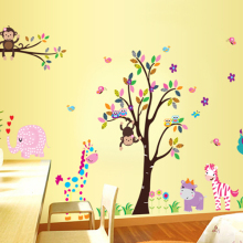 大型儿童房可爱树自粘墙纸贴可移除动物墙贴纸卧室幼儿园教室装饰