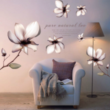 时尚客厅电视背景墙可移除墙贴纸 浪漫卧室温馨花卉贴画 玉兰花