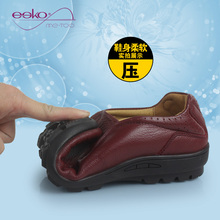 依斯高休闲女鞋软底鞋女真皮春秋季圆头舒适软皮牛皮厚底妈妈皮鞋