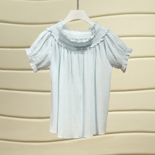 【Z禅S】专柜剪标女装2017夏装新款 短袖绉布贴领花甜美雪纺上衣