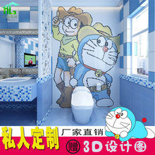 彩色瓷砖300地砖深蓝卫生间厨卫浴室玄关哆啦A梦马赛克天蓝白墙砖
