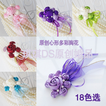 琪琪DS心形纯手工缎带玫瑰18色选主题婚礼新郎新娘婚礼胸花腕花