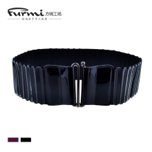 女塑身显瘦羽绒服松紧弹性宽腰带 黑腰封连衣裙子装饰牛皮带漆皮