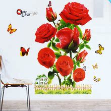 特价3D立体墙贴纸 红色玫瑰花 客厅卧室电视墙浪漫家居装饰壁纸画