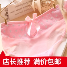 包邮学生纯棉透气舒爽女士三角内裤底腰可爱性感半透明网纱批發