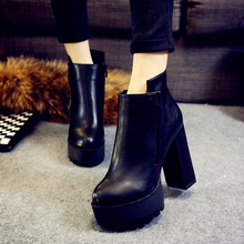 新款英伦女鞋深口粗跟单鞋2016秋季厚底防水台高跟鞋圆头工作皮鞋