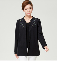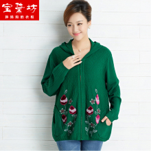 胖妈妈装春秋外套40-50岁中老年女装针织衫毛衣开衫中年妇女上衣