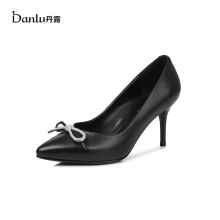 丹露真皮女鞋2016秋冬季新款浅口单鞋蝶结高跟鞋细跟低帮女单鞋