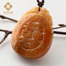 方圆珠宝 天然A货翡翠 糯种红翡正装双喜牌挂件 带证书包邮