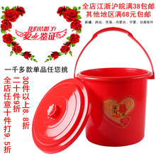 结婚喜字桶喜庆红色水桶多用有盖塑料圆桶带盖储水桶加厚塑料桶