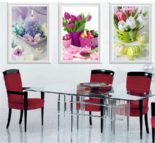 贴钻石十字绣新款5d钻石画满钻餐厅郁金香花卉钻石绣三联画砖石画