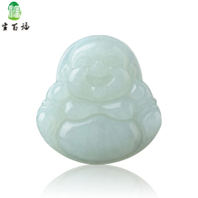 生百福 翡翠a货玉佛项链女款弥勒佛公吊坠玉坠带证书