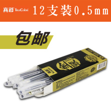 包邮真彩0221B办公商务中性笔 学生透明杆水笔0.5mm签字笔 12支装