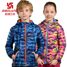 斯博兰帝儿童户外羽绒服男童女童短款轻薄印花羽绒服迷彩连帽外套