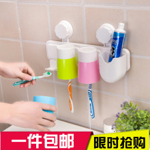 创意吸壁式牙刷架漱口杯套装三口之家吸盘式洗漱牙刷杯牙缸刷牙杯