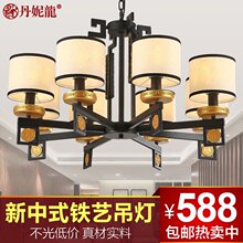 新中式吊灯客厅布艺灯仿古酒店会所工程餐厅铁艺餐饮灯具复古灯具