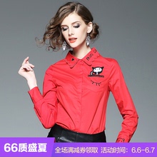 Moenso欧洲站2017春装新款女装时尚百搭重工猫咪刺绣修身长袖衬衫