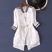 Q132夏季新款薄款防晒衣简约中长款七分袖收腰外套女装上衣7A774