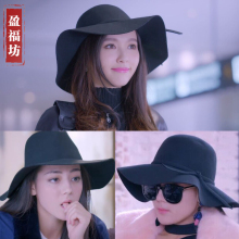 明星同款英伦爵士帽子复古百搭女士羊毛呢黑色礼帽秋冬韩版宽沿