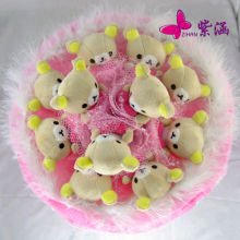 卡通花束11只浅棕抱心小轻松熊娃娃公仔送女友生日祝福创意礼物