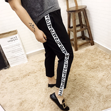 加大码女装秋装200斤哈伦裤胖mm显瘦字母女九分裤宽松小脚休闲裤