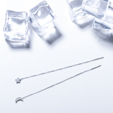 S925纯银耳线女简约长款星星月亮锆石防过敏耳链韩国气质耳吊饰品