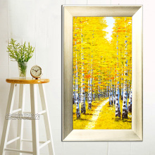 恒艺轩竖版秋天白桦树走廊玄关壁画客厅装饰画现代油画简约无框画