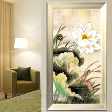 恒艺轩纯手绘装饰油画 客厅玄关竖版挂画中式素雅小清新-工笔荷花