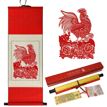 九斗云 蔚县传统精装十二生肖福鸡年特色剪纸卷轴画轴英文说明