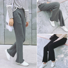 2016冬季女装韩版新款松紧腰百搭显高显瘦针织微喇叭裤纯色休闲裤