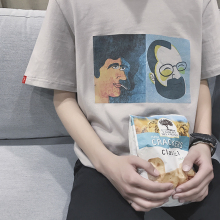 夏季印花T恤男打底衫基本款简约圆领宽松男士短袖t恤男学生上衣潮