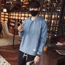 2017秋季新款连帽牛仔外套男韩版休闲套头牛仔卫衣复古修身上衣潮